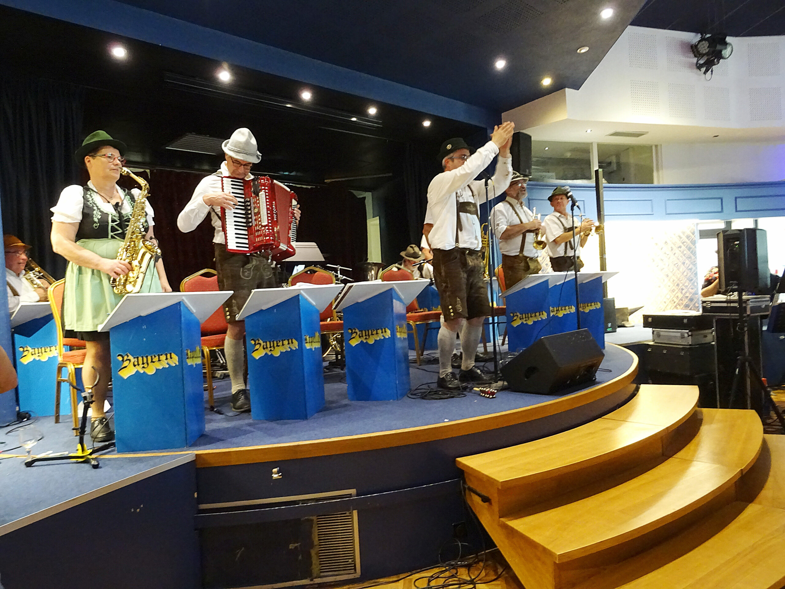 L’orchestre Bayern Capelle et ses 9 musiciens ont animé cet après-midi festif aux rythmes des cadences bavaroises. Il fallait bien digérer après la dégustation du fameux jarret de porc confit à la bière !